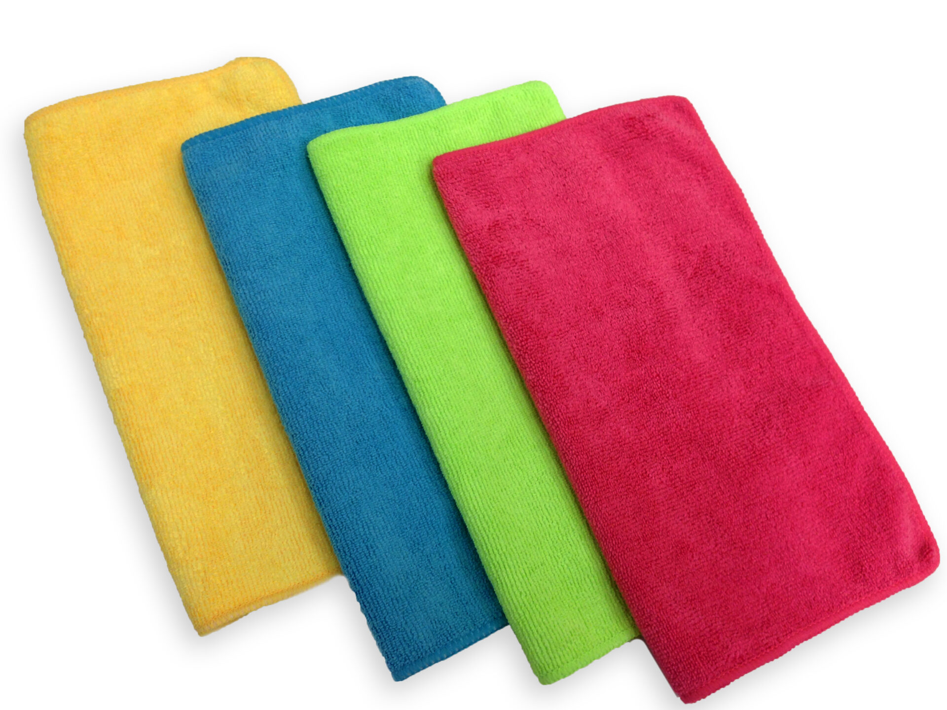 HEAVY DUTY COLOR CODED CLEANING MICROFIBER CLOTHS; ABSORBS DIRT AND DUST WITH EASE. WASHABLE UP TO 95˚C. 80% POLYESTER, 20% POLYAMID. 40 COLOR: BLUE,GREEN,YELLOW,RED.