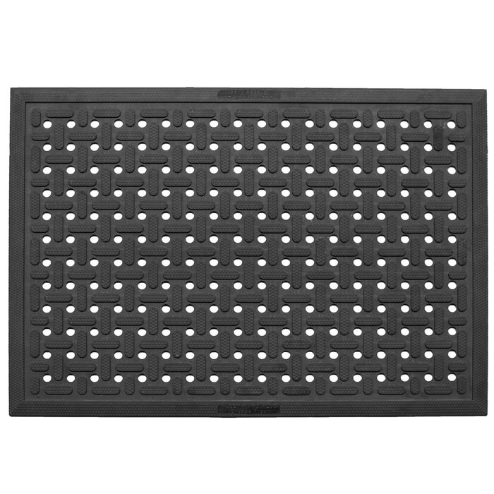 All-rubber matting designed exclusively for the professional kitchen and bar!Inorganic antimicrobial characteristics are built-in to inhibit the growth of bacteria, such as E-coli and Staphylococcus Aureus Kleen-Thru Plus features a resilient nitrile rubber construction that eases the fatigue of long-standing jobs in the kitchen or behind the bar, and also helps prevent impact breakage. A textured surface offers secure footing and the specially placed holes contribute to drainage and cleanliness. Oils and grease will not break down the all-nitrile rubber construction.Kleen-Thru Plus has low profile borders to facilitate cart traffic. The reduced weight allows for easy handling and cleaning.